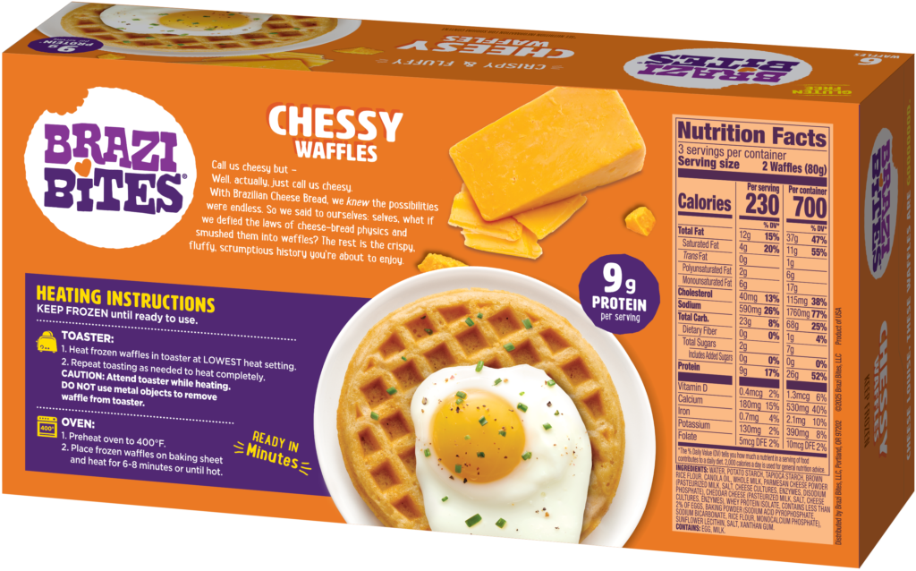 Our Cheesy Waffle delivers on the ultimate cheesy taste, inspired by our popular Brazilian Cheese Bread. Packed with 9g of protein, this crowd-pleasing flavor can be topped with all things savory, sweet or eaten on its own.